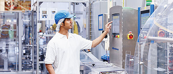 - Interfaccia utente intuitiva con Blue HMI*: consente agli utenti di configurare o regolare i prodotti in modo rapido e senza errori, nonché di ottenere una visione approfondita del processo di produzione e di ricavarne ottimizzazioni. Non è necessario alcun addestramento speciale o conoscenza preliminare, per garantire la massima disponibilità e produttività.
